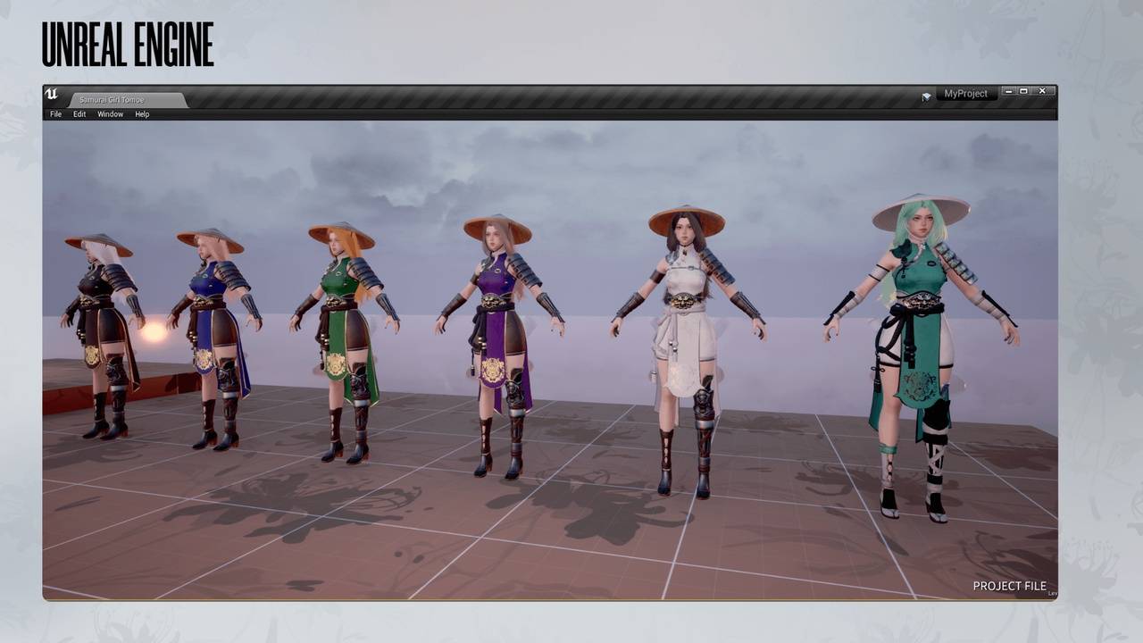 ue5亚洲武士少女,可爱的武士少女3D模型。她拥有ARKit混合变形、人形骨骼绑定和多种颜色选择。她将是角色扮演游戏或格斗游戏的完美角色!支持的虚幻引擎版本4.19 – 4.27 和 5.0 – 5.6