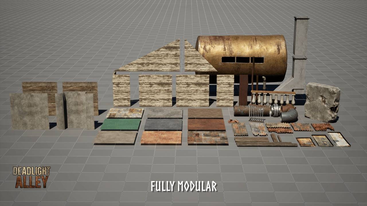 工业贫民窟模块化街道(小巷、模块化小巷、贫民窟、街道、城市)全模块化环境——使用可互换的模块化组件自由搭建。顶点绘制支持– 混合材质以实现自然变化和细节。模块化管道蓝图– 使用顶点绘制轻松创建和自定义管道。动态材料控制——用于快速更改木材和屋顶材料的蓝图系统。贴纸系统– 使用随附的贴纸添加更多细节。模块化雕刻木墙套件– 手工制作的雕刻木墙模块。支持的虚幻引擎版本5.5 – 5.7