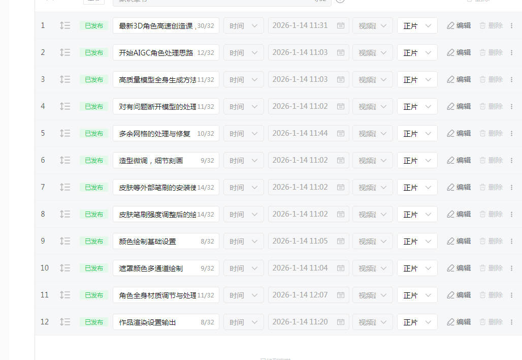 用户:免登录购买 购买了 新3D角色流程课程,2026高速AIGC+ZB