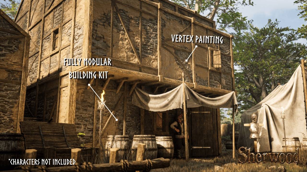 模块化中世纪城镇(中世纪城镇、中世纪村庄、模块化城镇、营地)终极中世纪城镇乡村建造套件,提供完全模块化的系统,让您能够创建从熙熙攘攘的中世纪街道到质朴的乡村营地的一切。该套件提供无与伦比的自定义选项,包含多层房屋、精细的室内装饰、帐篷、植被和道具,让您的中世纪世界栩栩如生。无论您是建造防御工事完善的城镇、隐蔽的亡命之徒营地、热闹的村庄,还是广阔的中世纪街道,Sherwood 都能为您提供轻松打造沉浸式环境的工具。支持的虚幻引擎版本5.3 – 5.7