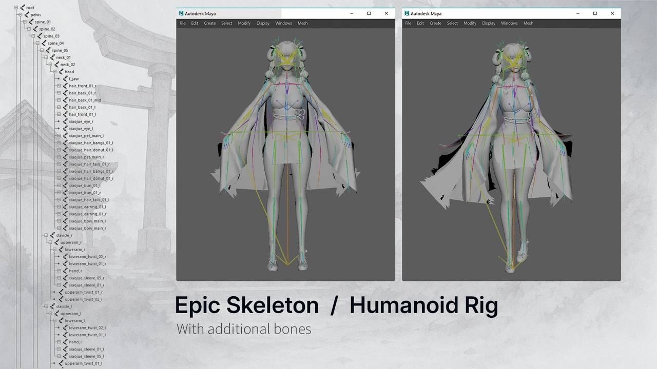 ⁺₊✧ ⋆ 骨骼绑定基于Epic Skeleton(UE5),并添加了额外的骨骼