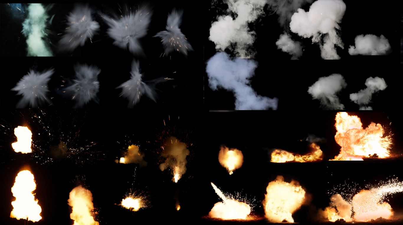 素材囊括25个大类,有爆破、碎片、烟雾、光效、爆炸、碎石、玻璃震碎、尘土爆破、水花、血液溅射、枪击、武器发射光效、还有各种天空云彩翻腾效果、羽毛飞散效果、雾翻腾火焰燃烧、火花飞溅等等各种粒子特效。