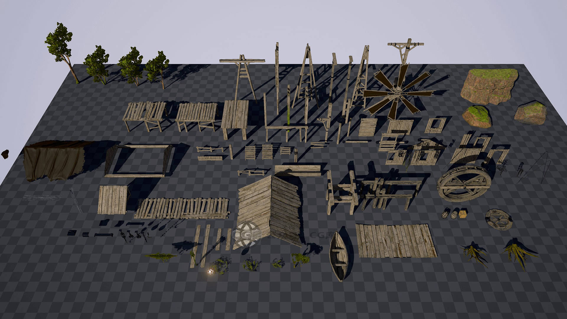 这是一套虚幻ue模块化沼泽棚屋包高度细致的模块化木结构、道具和树叶的集合。可用于营造沼泽环境、贫民窟、棚屋、水车、河滨码头。可很方便的使用在游戏、影视动画、虚拟现实作品中,机会难得,赶紧收藏下载吧。支持的平台支持的引擎版本4.14-4.27。为您的项目收集了高度详细的模块化木结构、道具和树叶。包括许多顶级质量的网格,具有高度可定制的材料和纹理,范围从2k到4k不等。还包括一个带有动态元素的预览地图,如流动的河流、旋转的水车和风车。木质材料包括通过“绘制”模式在木质表面自由绘制苔藓的功能,为环境带来额外的活力。