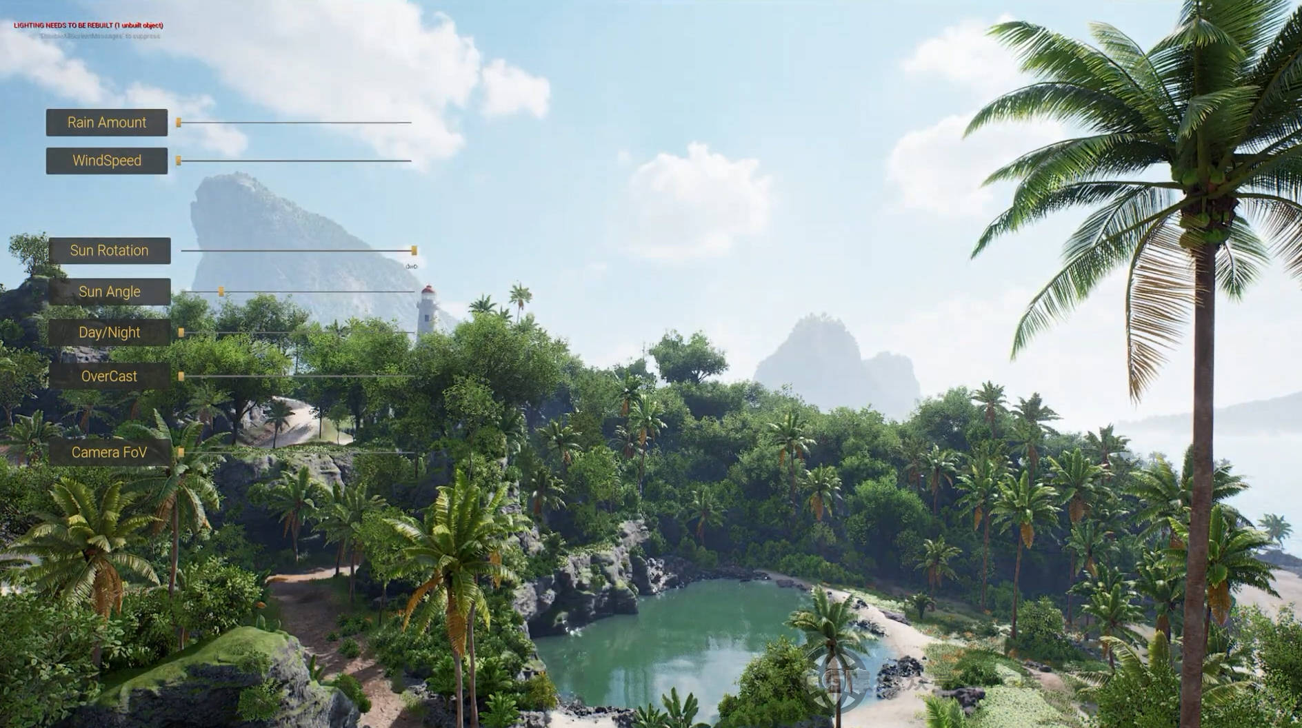 这是虚幻ue一个设置在太平洋的热带岛屿上的环境,支持的引擎版本5.1 - 5.3。该项目中包含的树木和树叶的集合(5亿下载量)这里有大约24万平方米的手工制作的可玩区域,以及茂密的丛林和洞穴。该项目提供了大约50种热带树叶、草、花等的变体。所有这些都经过了优化,并具有多个lod和冒名顶替,具有枢轴画家风的支持。树叶可以手动放置,也可以通过一组程序树叶体积放置.环境可以从平静而轻松的晴朗天气,到暴雨和强风的强风暴,再到所有必要的粒子系统,以及创造暴风雨气氛的程序性湿度。所有这些都可以通过blueprint实用程序小部件和blueprint weather actor进行控制。在那里,你还可以控制风的方向和强度,所有的树叶和粒子系统都会做出相应的反应。可很方便的使用在你的游戏、影视动画、虚拟现实作品中,机会难得,赶紧收藏下载吧。