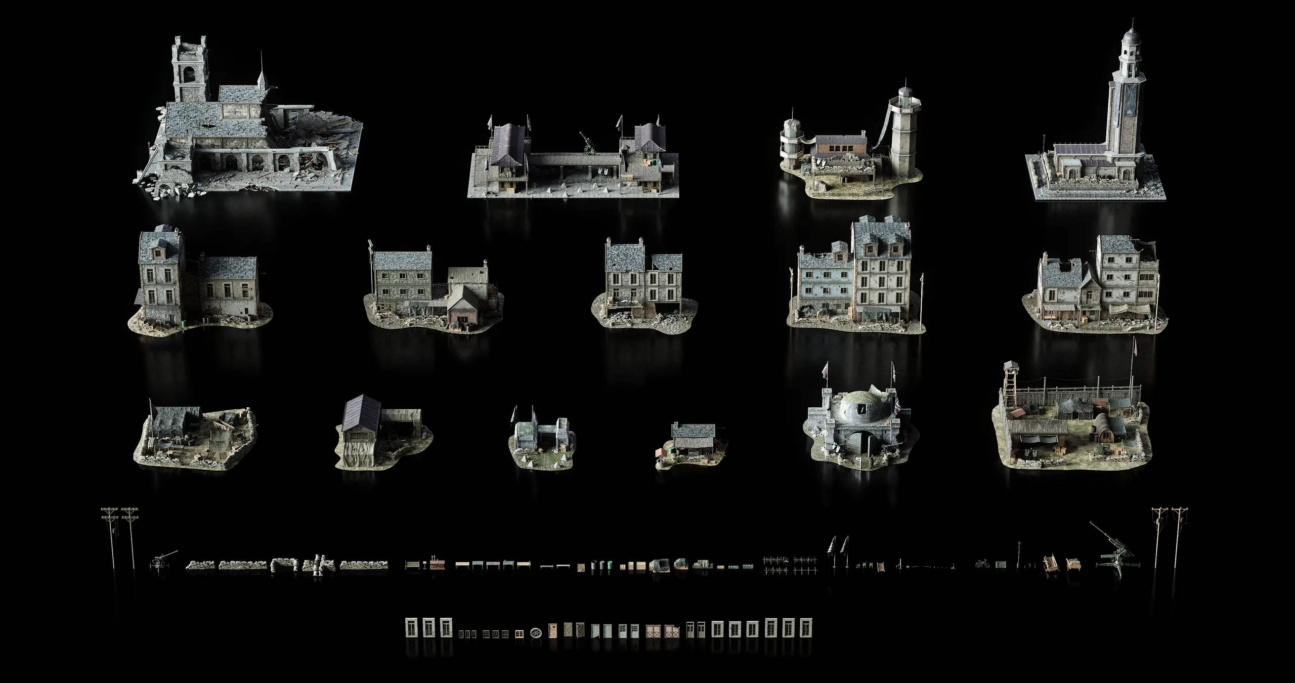 本资产包以二战战场环境为核心,打造了一系列高度写实的 3D 模型,涵盖城镇建筑、军事设施、场景道具等类别,为游戏开发、影视制作、虚拟仿真等领域提供沉浸式的二战场景构建素材。blender,obj格式,全3d可用。无地图,单体场景